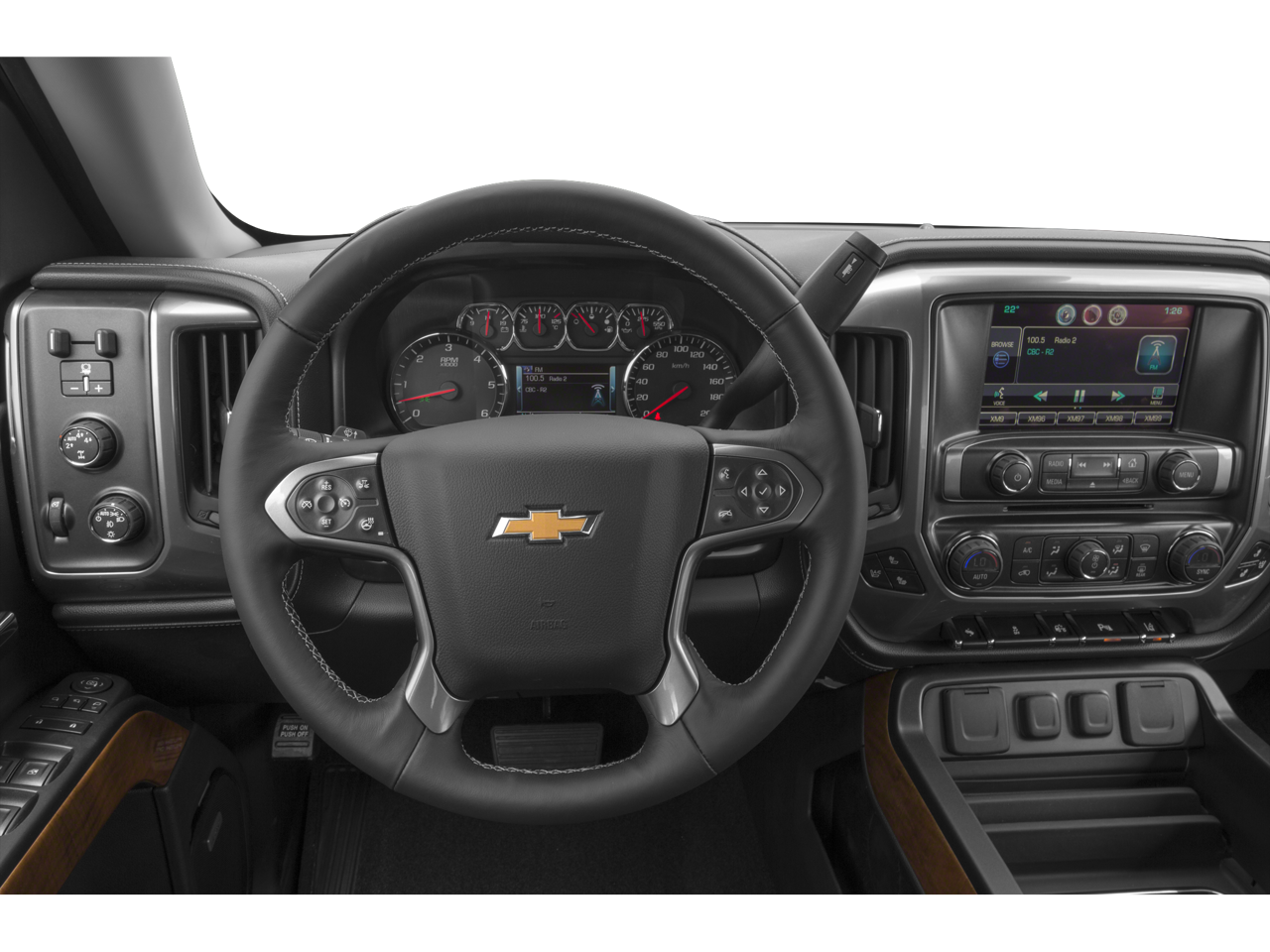 CUSTOM SPORT EDITION includes (AQC) Appearance Package, (UD7) rear park assist, (V76) recovery hooks, (TC7) body-color grille with chrome bars, (VB5) body-color front bumper, (VT5) body-color rear bumper, (CGN) spray-on bedliner and (RD2) 20" chrome wheels, LTZ PLUS PACKAGE includes (JF4) power adjustable pedals, (UQA) Bose premium audio system, (UD5) Front and Rear Park Assist and (UVD) heated leather steering wheel, ASSIST STEPS, CHROMED TUBULAR, 6" RECTANGULAR (factory installed), CHEVROLET MYLINK AUDIO SYSTEM, 8" DIAGONAL COLOR TOUCH NAVIGATION WITH AM/FM/SIRIUSXM, USB PORTS auxiliary jack, SD card slot, Bluetooth® streaming audio for music and most phones, hands-free smartphone integration, Pandora Internet radio, voice-activated technology for radio and phone, SEATS, FRONT FULL-FEATURE LEATHER-APPOINTED BUCKET WITH (KA1) HEATED SEAT CUSHIONS AND SEAT BACKS includes 10-way power driver and front passenger seat adjusters, including 2-way power lumbar control, 2-position driver memory, adjustable head restraints, (D07) floor console and storage pockets, ENGINE, 5.3L ECOTEC3 V8 WITH ACTIVE FUEL MANAGEMENT, DIRECT INJECTION AND VARIABLE VALVE TIMING includes aluminum block construction (355 hp [265 kW] @ 5600 rpm, 383 lb-ft of torque [518 Nm] @ 4100 rpm; more than 300 lb-ft of torque from 2000 to 5600 rpm) (STD), TRANSMISSION, 6-SPEED AUTOMATIC, ELECTRONICALLY CONTROLLED with overdrive and tow/haul mode. Includes Cruise Grade Braking and Powertrain Grade Braking (STD).