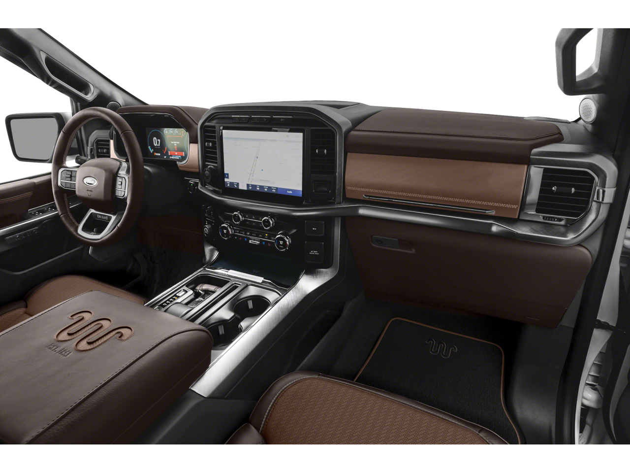 EQUIPMENT GROUP 601A HIGH Radio: B&O Unleashed Sound System by Bang & Olufsen, HD Radio and 18 speakers including subwoofer, Tires: 275/60R20 OWL Automatic Transmission, 275/65R18 OWL all-terrain spare tire, Power-Deployable Running Boards, Replaces step bar, Wheels: 20 Machined-Aluminum, light Caribou painted pockets and King Ranch ornament, Power Tailgate, tailgate step and tailgate work surface, Multi-Contour Driver & Passenger Seats, Active Motion, TWIN PANEL MOONROOF, ENGINE: 3.5L V6 ECOBOOST auto start-stop technology, TOUGH BED SPRAY-IN BEDLINER, TRANSMISSION: ELECTRONIC 10-SPEED AUTOMATIC selectable drive modes: normal, ECO, sport, tow/haul, slippery, deep snow/sand and mud/rut (STD).
